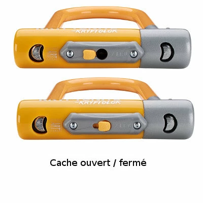 D’un coloris original orange, cette protection pour vélo est livrée avec deux clés en acier inoxydable. Le Key safe program s’applique : il est possible de se faire expédier, sans frais, un premier jeu de clés en cas de perte.