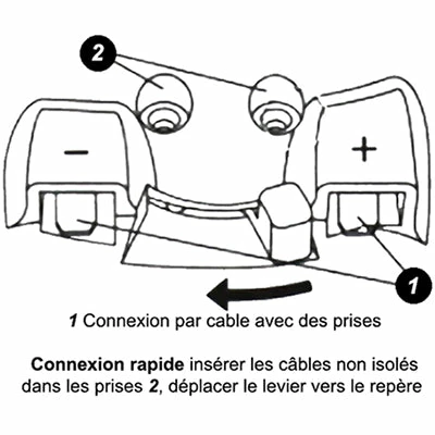 Vous pouvez connecter le feu arrière TopLight Line Braketec directement à la dynamo ou à une roue dynamo. Si vous avez également un feu avant fonctionnant sur dynamo, c’est ce feu qui est branché à la dynamo, le feu arrière est connecté au feu avant au moyen d’un câble électrique non fourni et disponible en option.