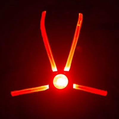 La lumière centrale. Placée à la jointure des sangles du harnais, la lumière centrale de couleur rouge offre un haut de visibilité. Elle propose 5 modes d’éclairages, réglables indépendamment de l’éclairage en fibre optique des sangles.