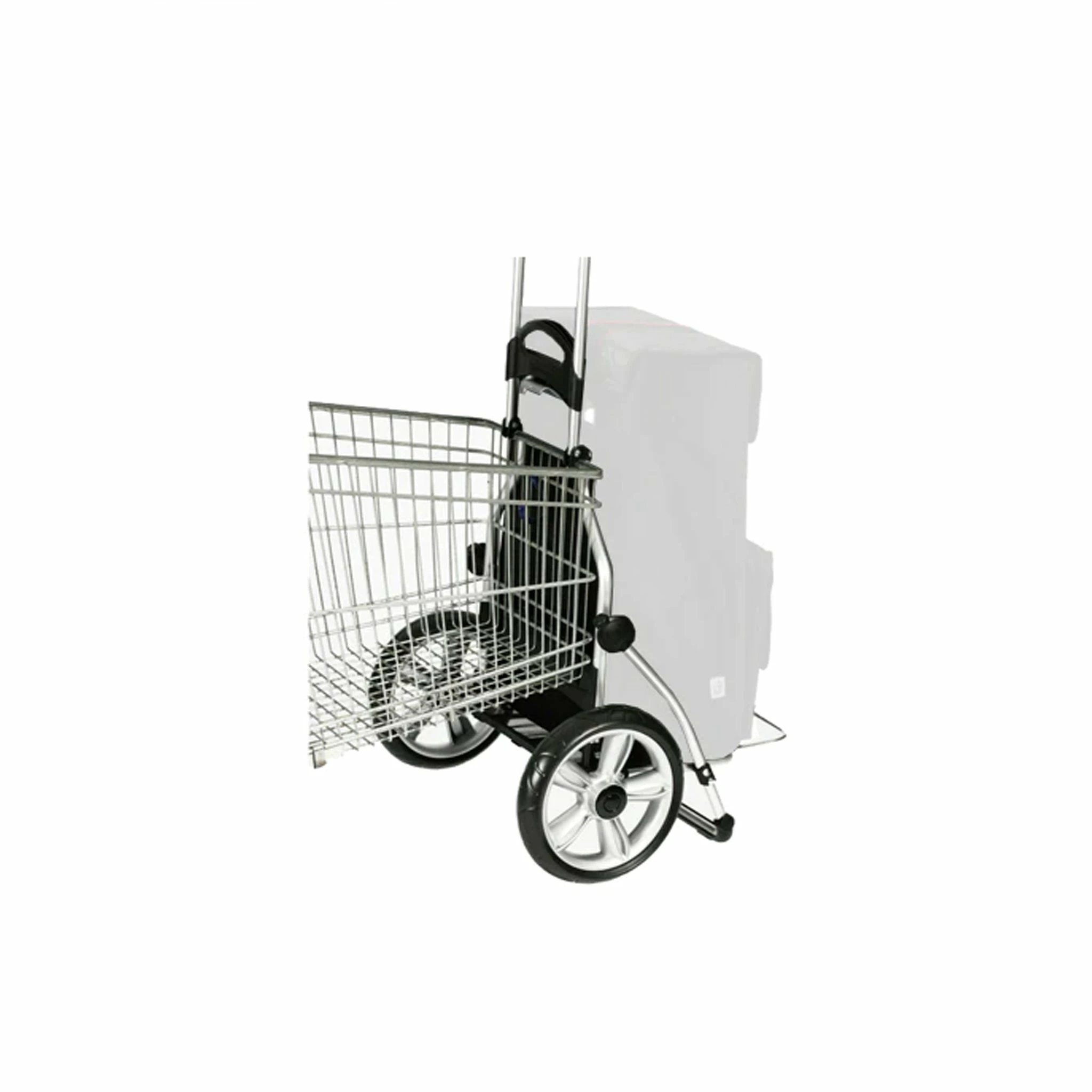 Le châssis Royal Shopper est à la fois léger et robuste avec sa construction en aluminium de haute qualité. Les roues à roulements à billes sont silencieuses et s’adaptent à tous les terrains, chemins de sentiers comme pavés. La surface de pose à la base du chariot peut être augmentée en déployant un arceau. Ainsi, vous pouvez y poser caisses, cartons et autres charges lourdes à la manière d’un diable. Sachant que le châssis supporte jusqu’à 50 kilos de charge.