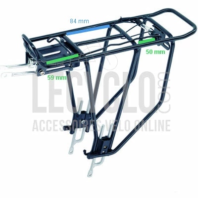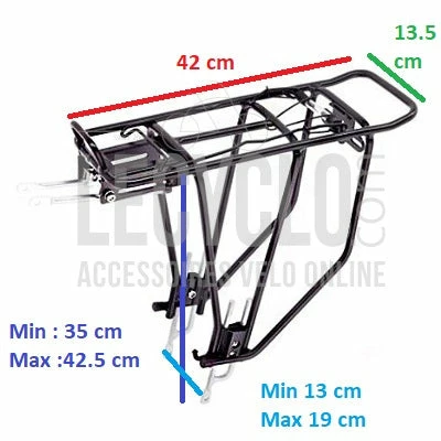 Ce porte bagage arrière s’installe sur un vélo dont le diamètre des roues est compris entre 26 et 28 pouces. C’est un porte bagage conçu pour accueillir des sacoches, des des doubles ou des triples sacoches. Il est solide et supporte une charge jusqu’à 25 kg .