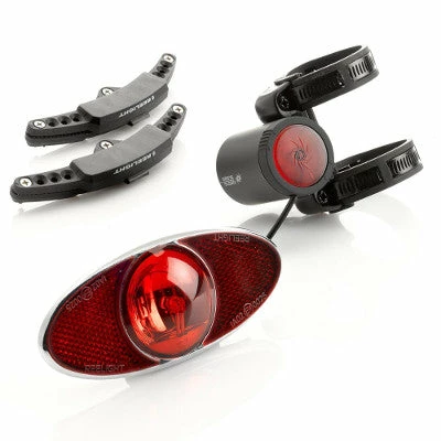 Cet éclairage arrière SL 621 est composé d’un feu arrière avec catadioptre rouge qui se fixe sur le porte bagage arrière, un générateur qui se monte sur le hauban et 2 aimants qui s’attachent sur les rayons du vélo. Si votre porte-bagage n’a pas de trous pour y installer le feu, un support vous est proposé en option. Le phare arrière et le générateur sont reliés au moyen d’un câble très discret.