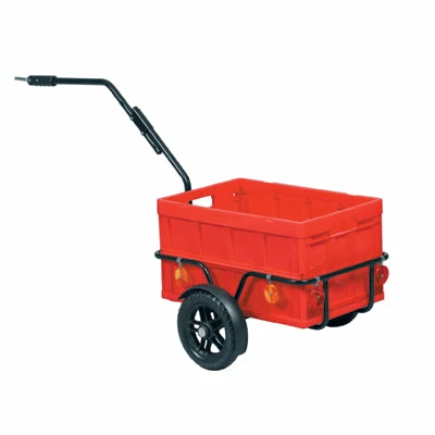 D’une capacité de 60 litres et pouvant accueillir une charge jusqu’à 60kg, cette remorque est équipée de roues à roulements à billes et de garde-boues pour plus de confort. Le châssis rigide accueille une caisse pliante rouge. Les 8 réflecteurs disposés sur les côtés de de la remorque lui permettent d’être vu même la nuit.